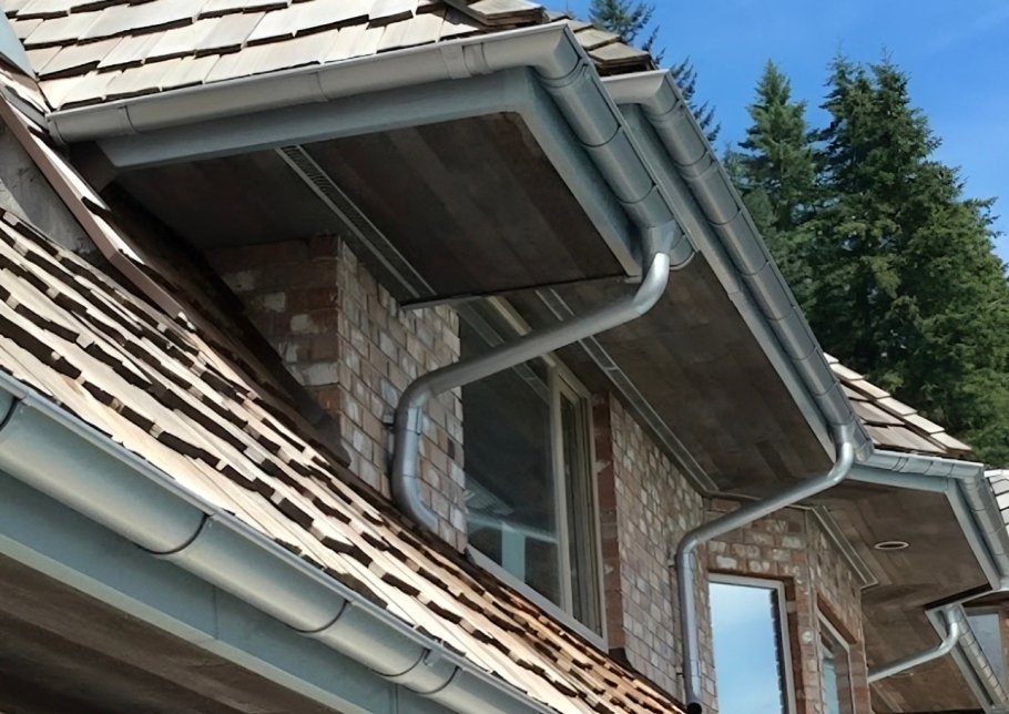 Durable aluminium gutter installation designed for British Columbia homes, providing efficient rainwater drainage, corrosion resistance, and long-lasting exterior protection.
